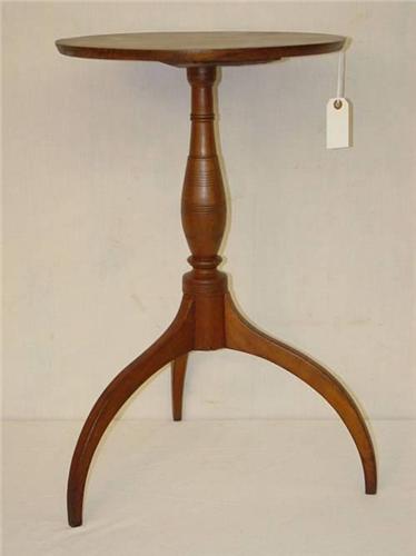 19TH CENT. CHERRY SPIDER LEG CANDLESTAND W/ TURNED SHAFT & ROUND TOP - REFINISHED, IMPERFECTIONS;