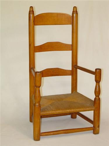 19TH CENT. CHILDS MAPLE & ASH LADDERBACK ARMCHAIR W/ WOVEN CRAFT PAPER SEAT (26 1/2" TALL) - REFINISHED, WEAR, & IMPERFECTIONS