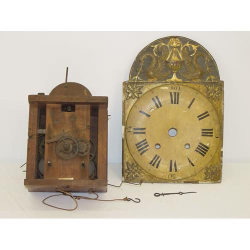 19TH CENT. CONTINENTAL WAG ON THE WALL CLOCK W/ GILT & PAINTED GESSO OVER WOOD CLOCK FACE W/ URN & SWANS CREST-MARKED "MOUSSE" (CLOCK FACE-14 1/2" X 10 1/8") - MISSING WEIGHTS & PENDULUM, WEAR, DISASSEMBLED, IMPERFECTIONS;
