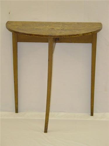 19TH CENT. COUNTRY PINE HEPPLEWHITE GRAIN PAINTED DEMILUNE CONSOLE TABLE (28 3/4" T X 27 3/4" W X 16" D) - WEAR TO PAINT, IMPERFECTIONS
