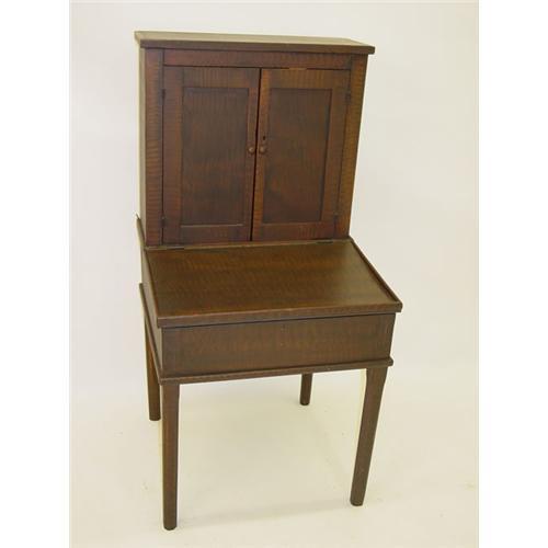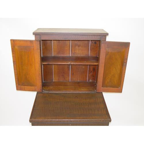 19TH CENT. COUNTRY SECRETARY DESK - BLACK WALNUT GRAIN PAINTED DESK W/ 2 FLAT PANEL DOORS, LIFT TOP WRITING SURFACE & SQUARE CHAMFERED LEGS (54 1/4" T X 27" W X 26 1/4" D) - WEAR, LATER PAINT, IMPERFECTIONS;