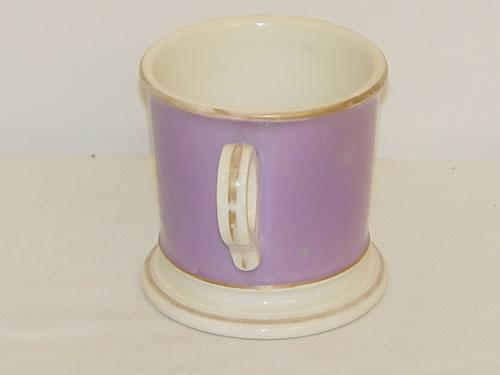 19TH CENT. FIREMAN'S OCCUPATIONAL SHAVING MUG FOR JOS. MCCRYSTAL W/ HAND PAINTED HORSE DRAWN FIRE PUMPER (3 3/4" T X 3 3/4" W) - WEAR TO GILT EDGES, IMPERFECTIONS