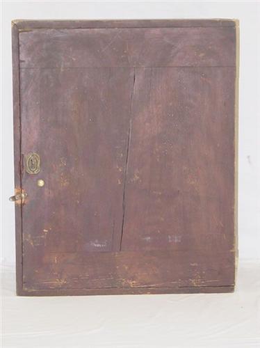 19TH CENT. GRAIN PAINTED DOVETAILED WALL CABINET W/ DIVIDED INTERIOR & BRASS HARDWARE & LOCK (22 1/2" T X 18" W X 12" D) - WEAR, PAINT LOSS & IMPERFECTIONS