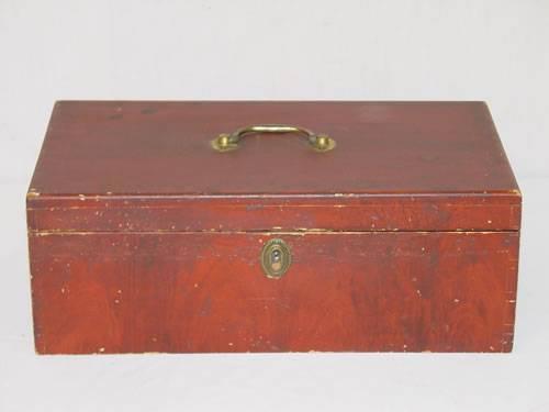 19TH CENT. GRAIN PAINTED FLAT TOP DOCUMENT BOX W/ DOVETAILED CONSTRUCTION IN RED & BLACK PAINT - PAINT WEAR & LOSSES;