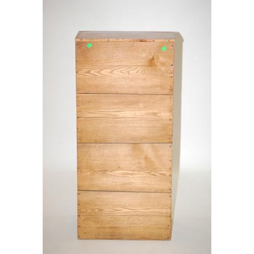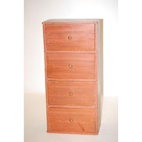 19TH CENT. NEW ENGLAND GRAIN PAINTED CHEST-COUNTRY 4 DRAWER MIXED WOODS UTILITARIAN CHEST IN RED & BROWN GRAIN PAINT, DRAWERS FASHIONED FROM SOAP CRATES W/ 4 WOODEN KNOBS (42 1/4" T X 20" W X 12 1/2" D) - WEAR, SMALL LOSSES, IMPERFECTIONS