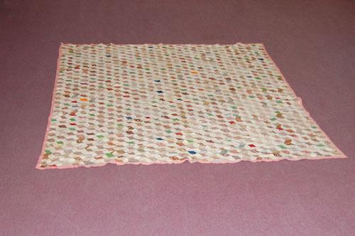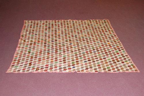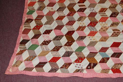 19TH CENT. NEW ENGLAND HANDSEWN QUILT - 19TH CENT. TUMBLING BLOCKS QUILT TOP W/ HANDSEWN COTTON CALICO PRINTS & PINK PRINT BORDER (6 FT. 7" X 8 FT. 1") - WEAR, SOILING, IMPERFECTIONS