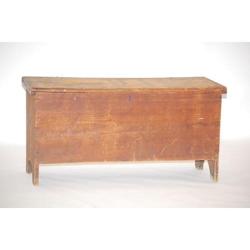 19TH CENT. NEW ENGLAND LOW BLANKET BOX - 19TH CENT. PINE LOW BLANKET BOX W/ MOLDED TOP, INTERIOR COVERED TILL COMPARTMENT, CUT-OUT ENDS & SNIPE HINGES IN NATURAL FINISH (23" T X 46" W X 18 1/2" D) - WEAR, SMALL BREAKS & LOSSES, IMPERFECTIONS