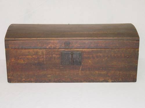 19TH CENT. NEW ENGLAND PINE PAINTED DECORATED DOME TOP BOX - IMPERFECTIONS & PAINT WEAR;