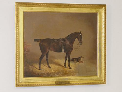 19TH CENT. OIL ON CANVAS "MAJELLA" 1ST PRIZE SADDLE MARE BAY STATE FAIR 1888, SIGNED ON LOWER LEFT LYNWOOD PALMER (28" X 32")