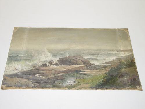 19TH CENT. OIL ON CANVAS OF COASTAL LANDSCAPE-UNSIGNED & UNFRAMED (NO STRETCHER) (12" X 20")