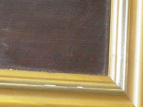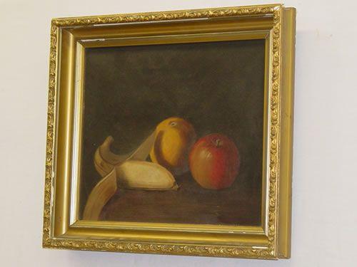 19TH CENT. OIL ON CANVAS STILL LIFE OF FRUIT SIGNED MGK '07 ON LOWER RIGHT (9 3/4" X 11 3/4") - LOSSES TO FRAME, DIRTY