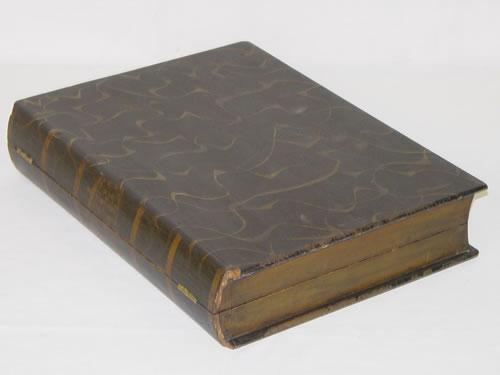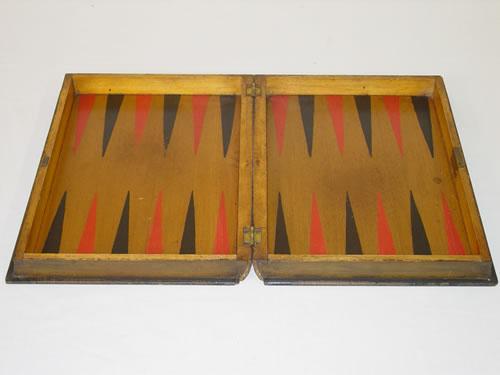 19TH CENT. PAINT DECORATED BOOK FORM DOVETAILED LOCKING BOX W/ PAINTED GAMEBOARD INTERIOR - PAINT LOSS, SPINE DAMAGE, IMPERFECTIONS