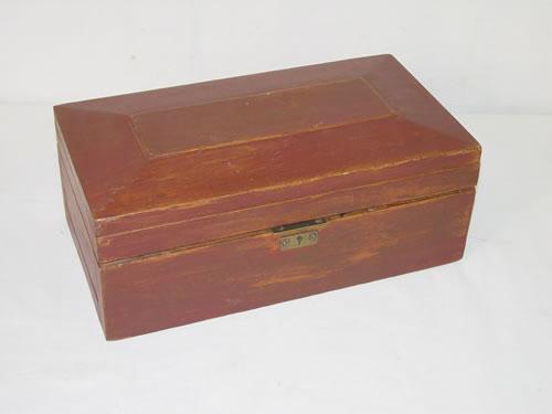19TH CENT. PAINTED BIRDSEYE MAPLE PANELED TOP DOCUMENT BOX (12" L X 6 1/2" D X 4 1/2" H) - WEAR & IMPERFECTIONS