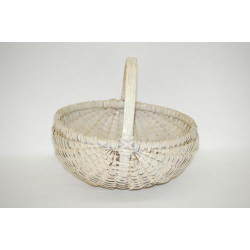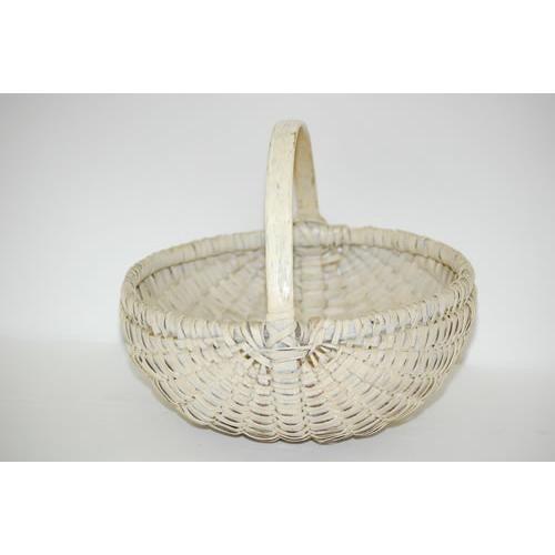 19TH CENT. PAINTED MELON STYLE WOODEN SPLINT BASKET W/ STATIONARY HANDLE IN WHITE PAINT (12 1/2" T X 16" W) - WEAR, SMALL LOSSES, IMPERFECTIONS