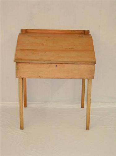 19TH CENT. PRIMITIVE PINE & MAPLE SCHOOL DESK IN PUMPKIN ORANGE PAINT - PAINT WEAR & IMPERFECTIONS;