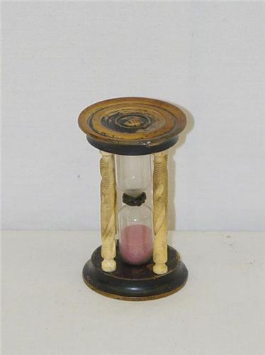 19TH CENT. SAILOR MADE IVORY & TURNED WOOD 3 1/2 MINUTE TIMER - LOSSES TO PAINT & IMPERFECTIONS