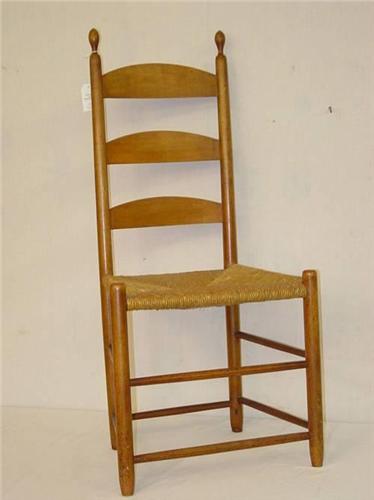 19TH CENT. SHAKER MAPLE LADDER BACK SIDE CHAIR W/ 3 SHAPED RUNGS & BACK LEG TILTERS - REFINISHED, IMPERFECTIONS;