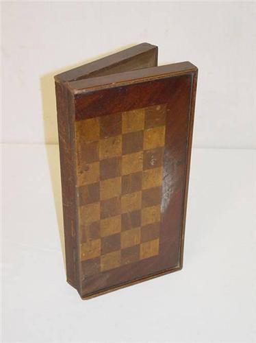 19TH CENT. WALNUT GAMEBOARD BOX SIGNED INSIDE W.J. CAMERON DALTON WAYNE CO. BATTLE CREEK MICHIGAN JUNE 2ND 1860 - IMPERFECTIONS & WEAR;