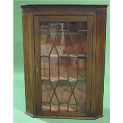 19TH CENTURY WALNUT HANGING CUPBOARD. Glass door. Line inlaid decoration. Three shelves in interior. 40” H, 30” W, 20” D