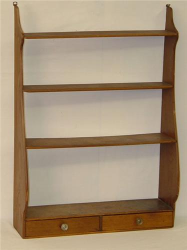 19TH CENT. WALNUT WHALE END WALL SHELF W/ 4 SHELVES & 2 DRAWERS (25" W X 35" H) - IMPERFECTIONS