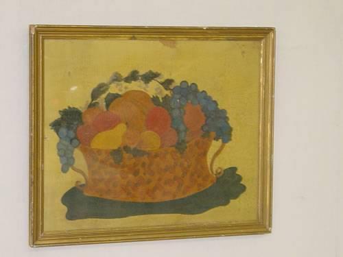 19TH CENT. WATERCOLOR THEORUM ON PAPER OF BASKET OF FRUIT, UNSIGNED IN LEMON GOLD FRAME (17.5" X 21.5") - MINOR LOSSES & IMPERFECTIONS;