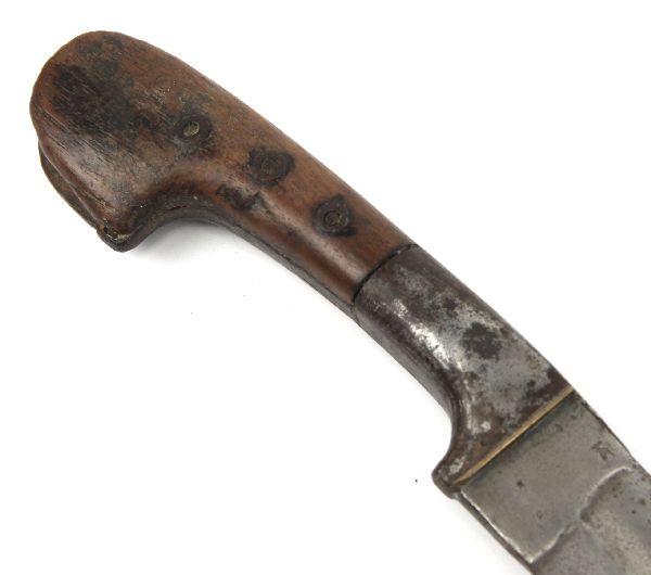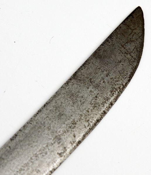 Circassian style 19th Century Caucasian Shashka saber. 33inch curved blade with broad single fuller on each side. Wood handle with iron ferrule, and no guard. Good even patina. No scabbard. Overall good condition.