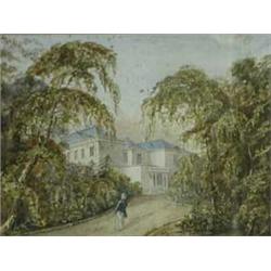 19TH CENTURY, ENGLISH SCHOOLA REGENCY COUNTRY HOUSEwatercolour, indistinctly signed and inscribed verso. 6" x 8 1/4" (15 x 21cm) Est.80/150