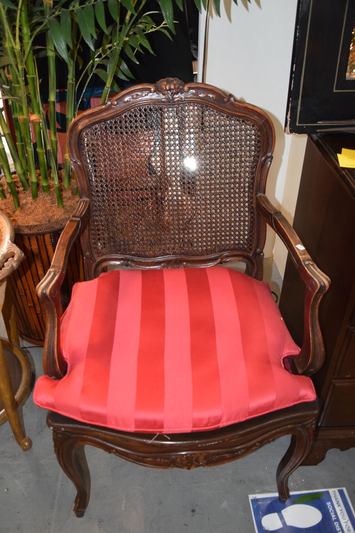 19TH CENTURY FRENCH PROVINCIAL CARVED ARM CHAIRS W/CANED BACKS (PAIR)
