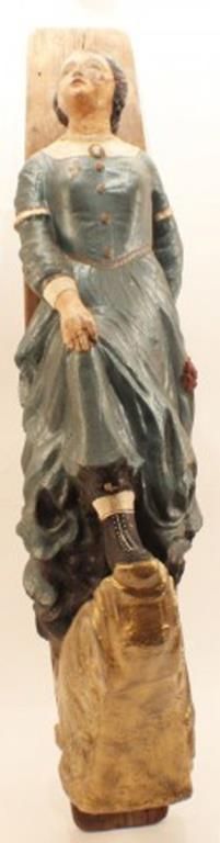 19TH CENTURY SHOP SIGN IN THE FORM OF A SHIPS PROW, measures approx 67 inches Tall x 18 in Deep x 18 in Wide