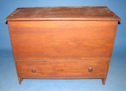 19TH CENTURY SOFTWOOD MULE CHEST WITH ONE DOVETAILED DRAWER. 31.5” H x 40.25” W x 20.75” D.