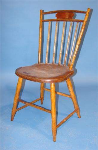 19TH CENTURY BIRD CAGE WINDSOR SIDE CHAIR. 5 spindle back. Bamboo turnings at back and feet. 34.25” H to top of back, 16” W