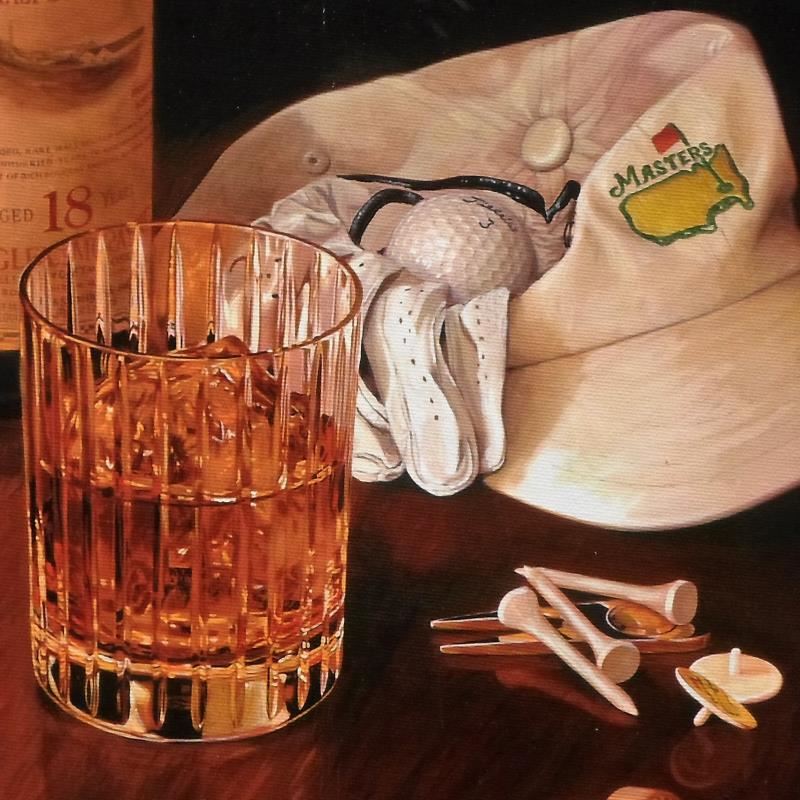 "19Th At Augusta" is a numbered limited edition giclee on canvas by Nobu Hairara. It comes bearing the artist's authorized signature and with a Certificate of Authenticity. Measures approximately 14.25"x9.5" (image).