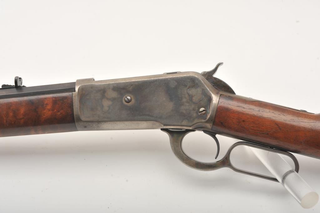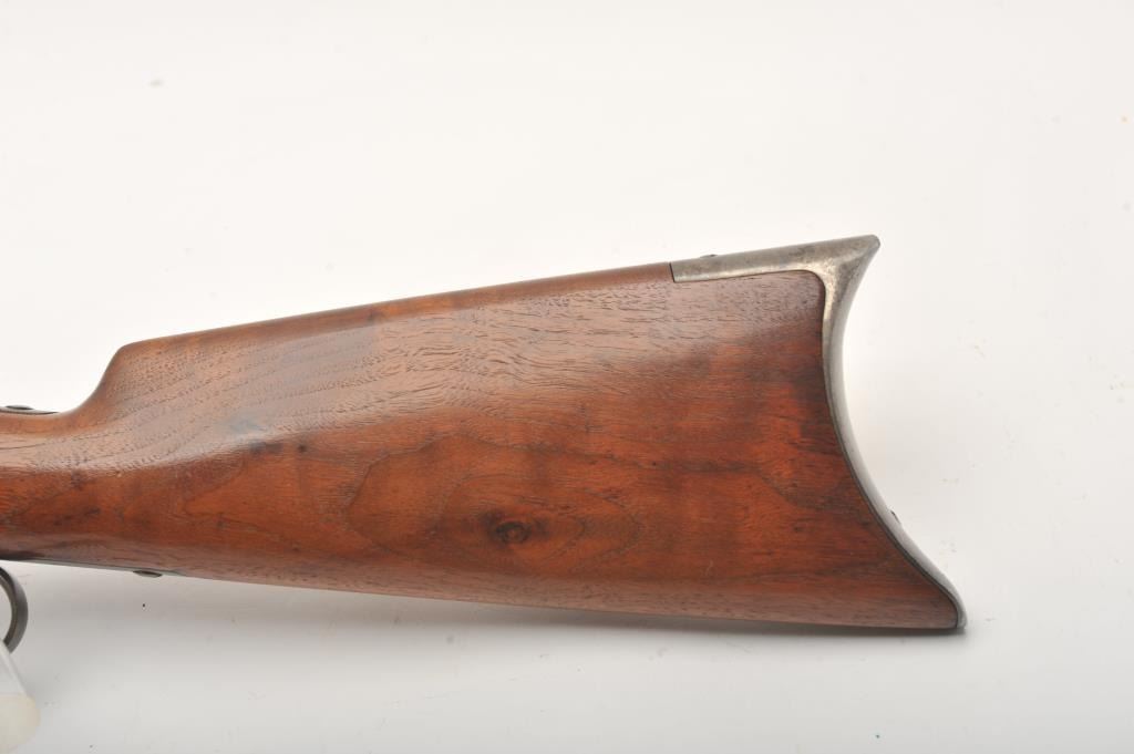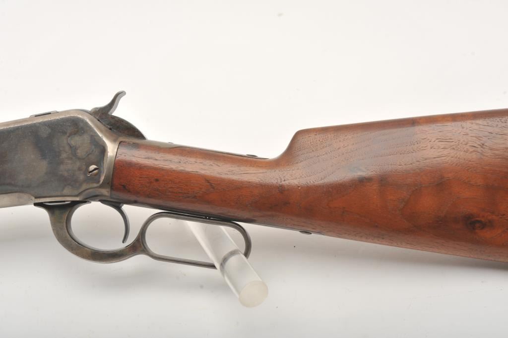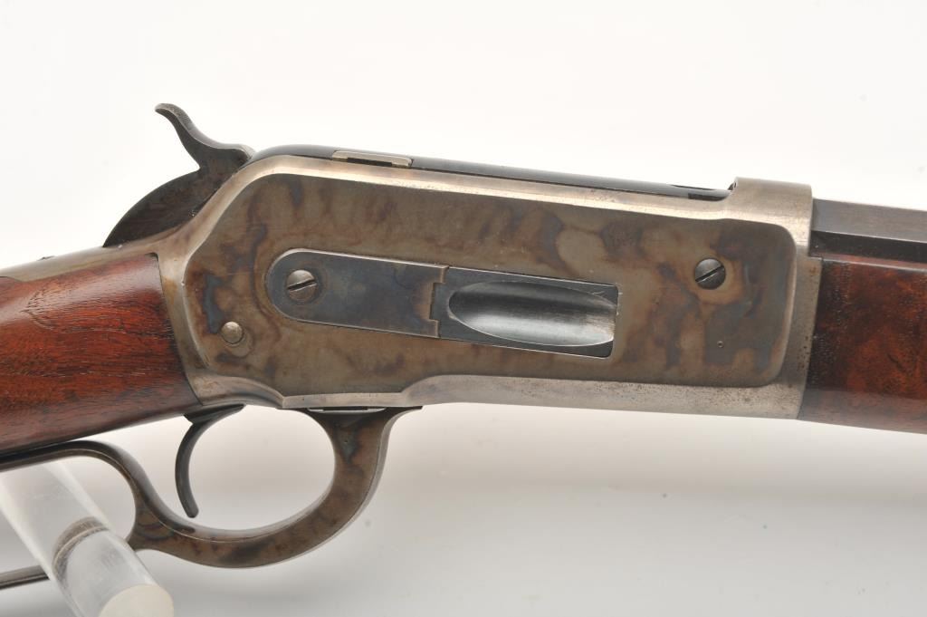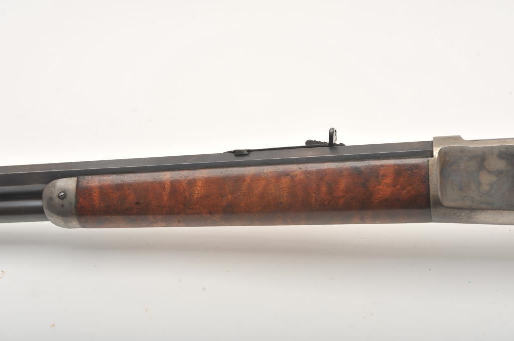 Winchester Model 1886 lever action rifle, .45-70 caliber, 26” octagon barrel, blued and case hardened finish, wood stocks, S/N 50972; overall fine condition with majority of original blued finish and case colors remaining; fine bore, crisp action, sharp markings and fine wood stocks displaying nice graining. A beautiful ’86 in a great caliber. (Antique). Est.: $4,000-$8,000.