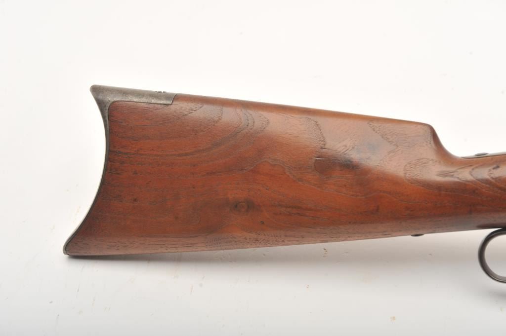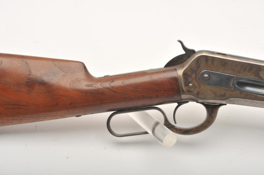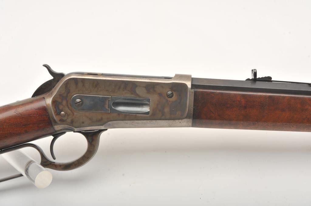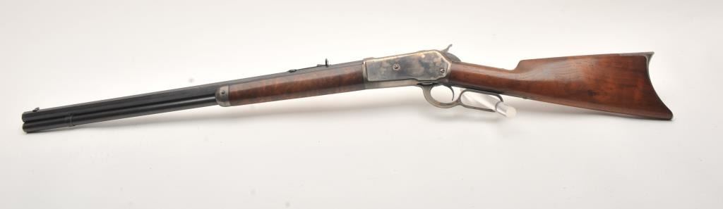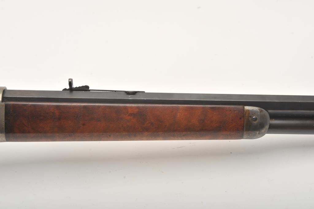 Winchester Model 1886 lever action rifle, .45-70 caliber, 26” octagon barrel, blued and case hardened finish, wood stocks, S/N 50972; overall fine condition with majority of original blued finish and case colors remaining; fine bore, crisp action, sharp markings and fine wood stocks displaying nice graining. A beautiful ’86 in a great caliber. (Antique). Est.: $4,000-$8,000.