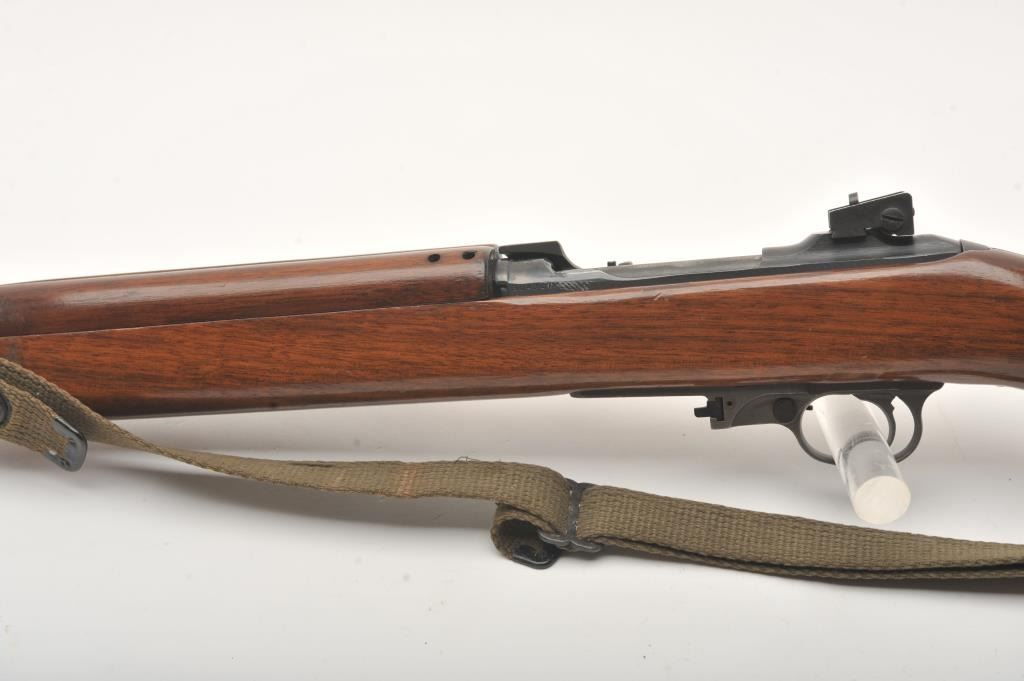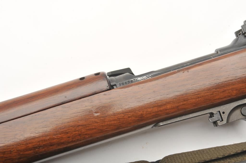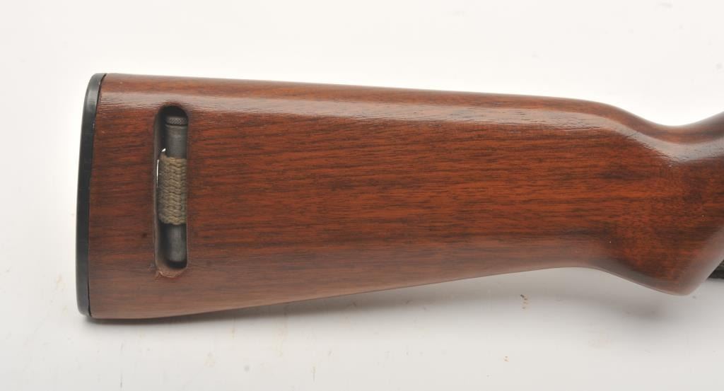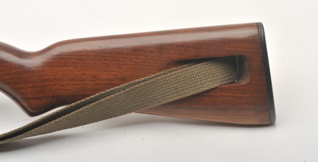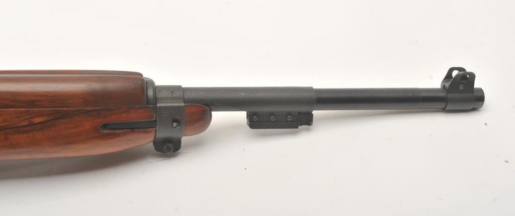 M1 style semi-automatic carbine by Alpine, .30 caliber, 18” barrel, blued finish, bayonet lug, no magazine, wood stock, green woven sling with oiler, S/N 304327; overall very good condition with majority of finish remaining on metal surfaces, very good bore, crisp action and markings, very good wood. (Modern). Est.: $200-$400.