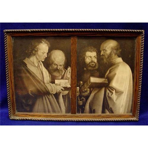 19c Engraving of a16th Century Old Master "Scholars Scene" marked 1526AD, in period Oak Frame. SIZE: 18.5" x 12.5" (framed). CONDITION: Very good.