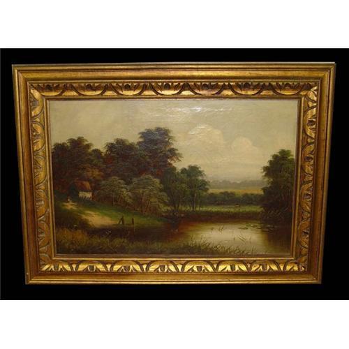 <table width="100%" border="0" cellspacing="0" cellpadding="4"><tr><td><em> Nice Landscape.</em></td></tr><tr> <td width="100%"> Oil on canvas, indistinguishably signed, possible G. Culo lower left, impressionist 19th century European cottage lake landscape scene oil painting measuring 16 x24 inches and the parcel carved gilt wood frame measures 22.5 x 30.75 inches. The painting has some age related surface crazing and needs a light cleaning, has never been ripped repaired or restored is in very good overall condition and would make a great gift or addition to any fine household. </td></tr><tr> <td> </td></tr><tr> <td>Reference #: OIL_372</td></tr><tr><td>Condition:See Desc.</td></tr><tr><td>Year:19th Cent</td></tr><tr><td>Title:19c European Cottage Lake Landscape Oil</td></tr><tr><td>Location:Long Island, NY</td></tr></table>