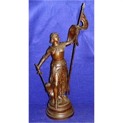 signed Louis Moreau on the base, statue of Joan Arc in full knights armor
