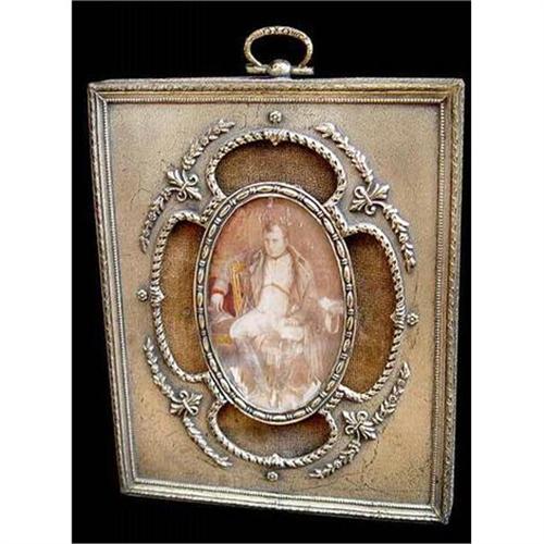 19th Century French Napoleon Bonaparte Hand Painted Miniature Oil Painting in an oval shape, in an Empire style felt lined brass picture frame.<P>