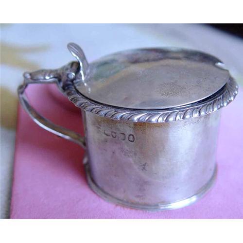<tr><td>Title:19c Georgian Silver Mustard Pot Blue Glass</td></tr>