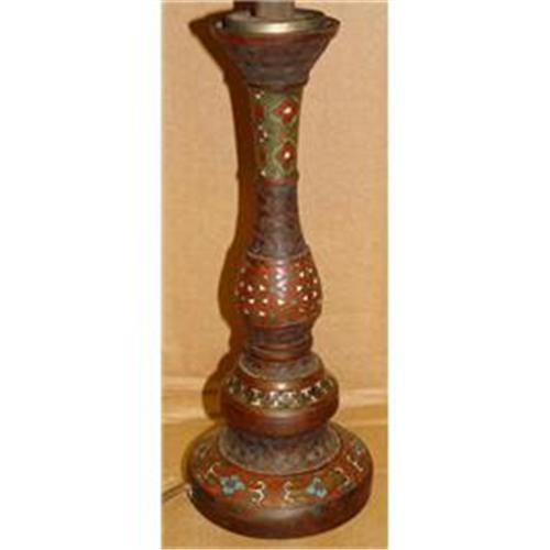 19c Japanese Champlevé Enamel Bronze Candle Stick Meiji Era
