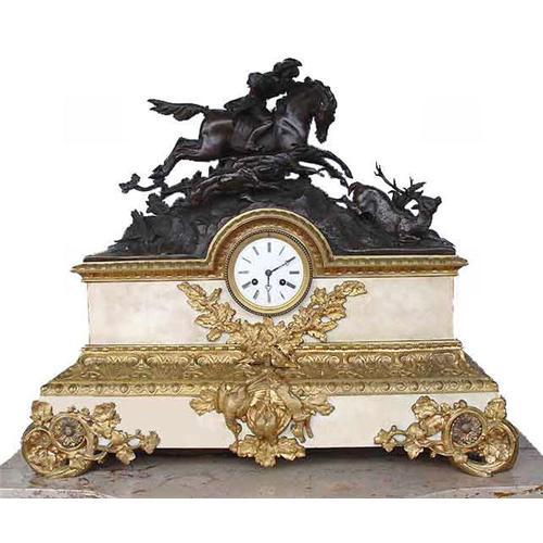 A French Hunting Scene Chiming Mantle Clock