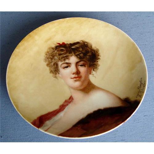 Paris Porcelain Charger by d' apres Chaplin A. Seraton Portrait of Young Girl Woman Lady which would make a nice gift or addition to any fine household. Size: 8 inch (diameter)