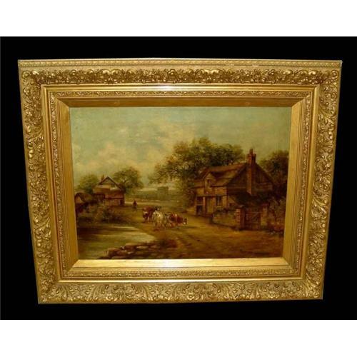 <tr><td>Title:19c Victorian Farm Cow Landscape Oil Painting</td></tr>