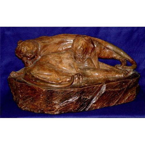 <tr><td>Title:19c Wild Cats Terracotta Sculpture Panther</td></tr>
