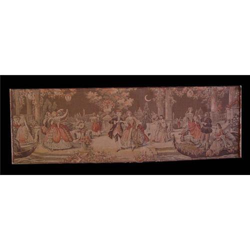 Colorful depiction (almost Shakespearian) of a lavish 18th century garden celebration, with musicians, Venetian style gondolas, flowers and dancing, this impressively large piece is in its original stretcher and would make a superb addition to any fine household or collection.
