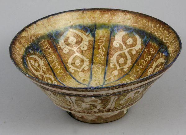 10th-13th Century Persian glazed terracotta lusterware bowl, 3 1/2" h. x 8 1/4" diam. Property of the late Robert O. Peterson, San Diego, CA.