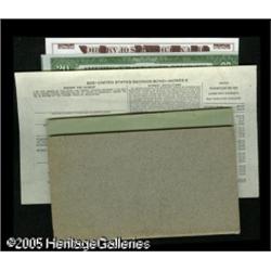 <B>19th & 20th Century Miscellany.</B></I><BR>Beeman's Lightning Time Calculator<BR>Dietrick's Standard Paper Money Catalogue 20th Edition<BR>Luther B. Tuthill Price List of Antiquated Paper Money No. 24 1911<BR>American Bank Note Company Specimen Bank Note Choice CU<BR>Giori Jefferson Head Test Note - Red Serial Number Inverted, Purplish Inverted Back Choice CU<BR>$25 United States Savings Bond 1952 Chicago, IL XF, paper clip indentation.<BR>Two small early paper money offerings are included in this lot. The savings bond is uncancelled and it is not from Oklahoma as is commonly seen.<BR> 6 items Lot:15546