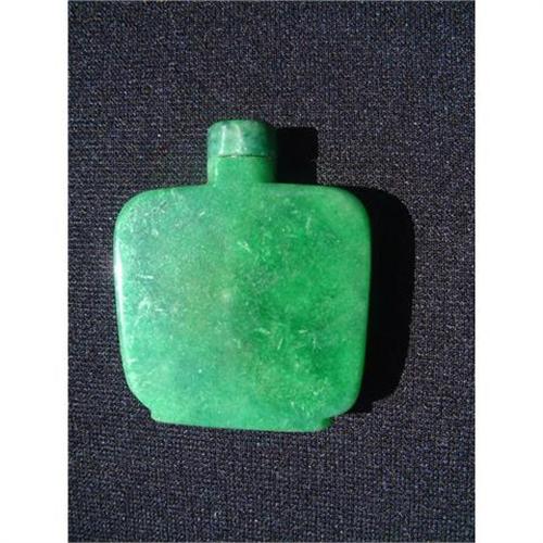 19th.-20th. century fei tsui green jadeite snuff bottle with same material stopper (no spoon). Magnificent green color and flawless snuff bottle. Size: 2.2". Provenance: Dr. Veleanu's jade collection, the author of collectors' textbook: "Jade. 5000 BC to 1912 AD, Guide to collectors". Estimated value: $1500.
