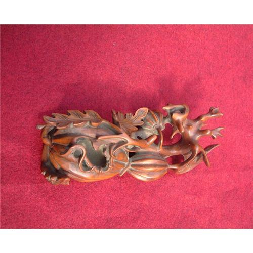 19th.-20th. century Chinese wood carving in shape of pumpkins and attached tendrils and vines. This is an exquisite master carving rendering the smallest details. Age patina is present on the exotic carved wood. Estimated value: $1.200.